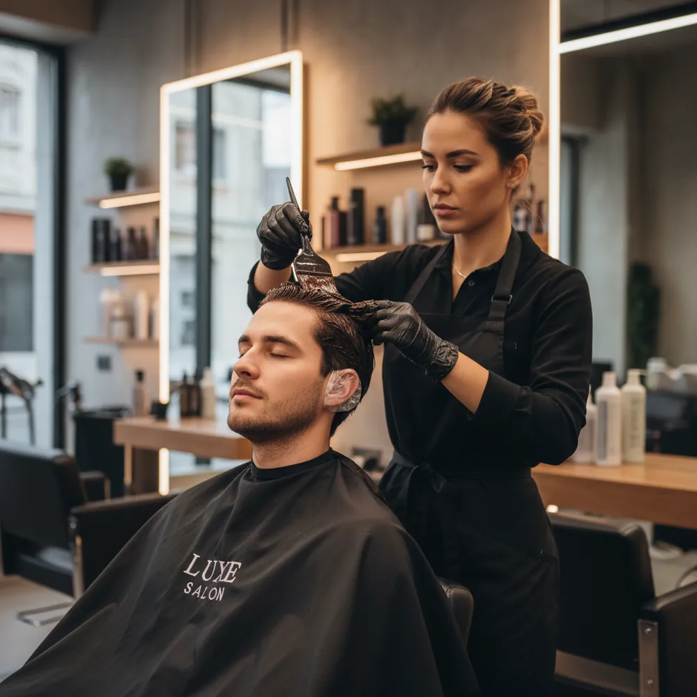 Professional hair transformation with expert color consultation, premium products, and advanced application techniques. Service includes detailed color analysis, strand testing, professional mixing of premium colors, precise application, processing with care, and protective aftercare treatment. Our experienced colorists ensure vibrant, even coverage with long-lasting results. Includes color maintenance guide and touch-up recommendations.